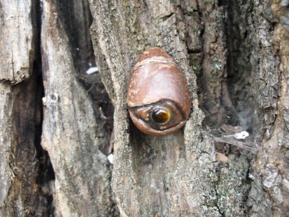 Egg shaped and with an eye created with a natural tiger's eye cabochon (glued with epoxy resin), it's a special and mystic gift.